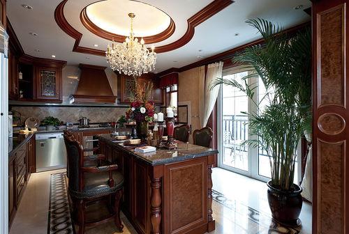 欧美别墅厨房的装饰元素丰富多样,从餐具、厨具到装饰画,都能为厨房增添一份独特的韵味。